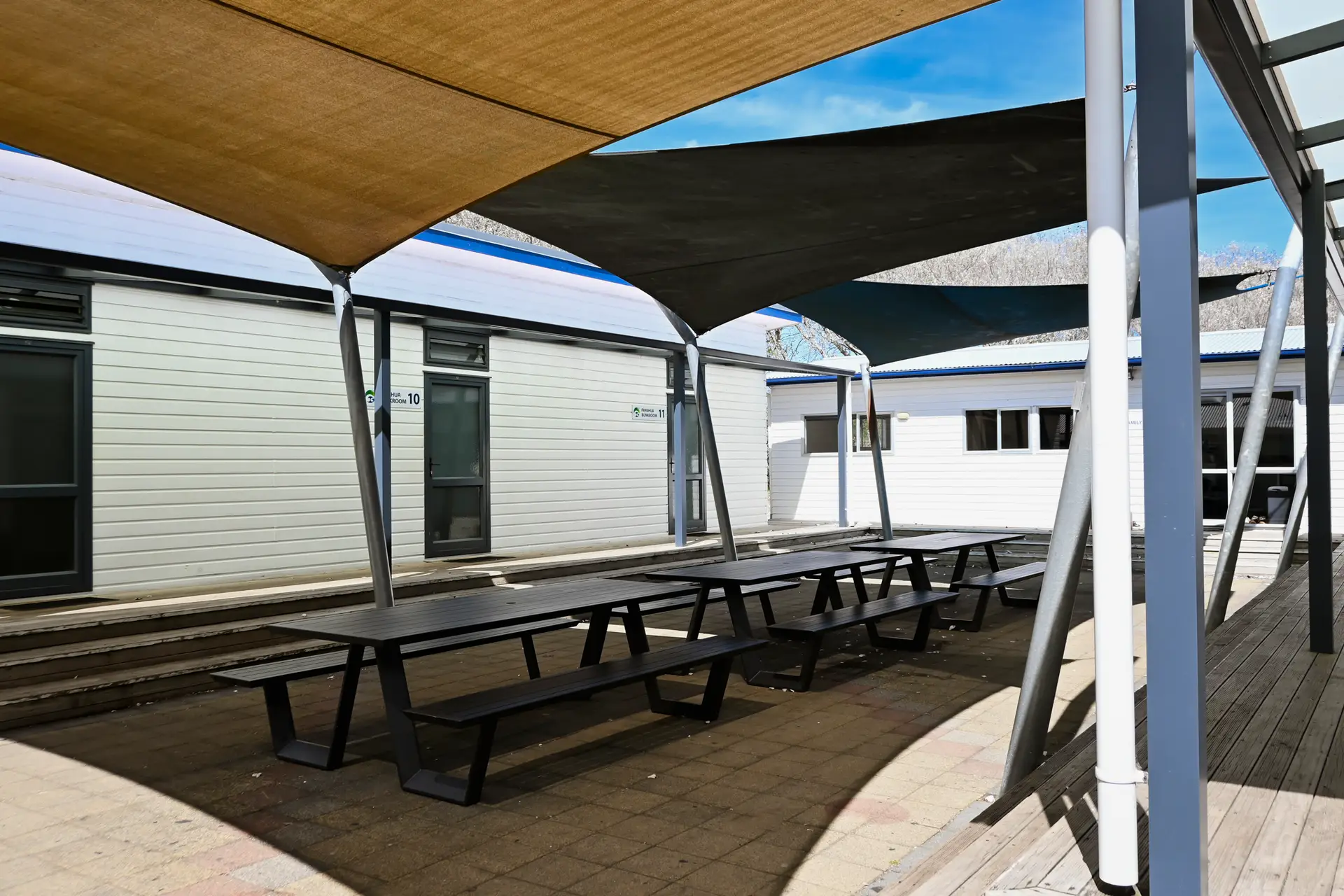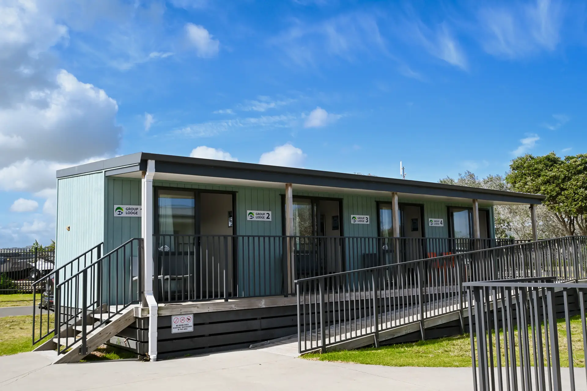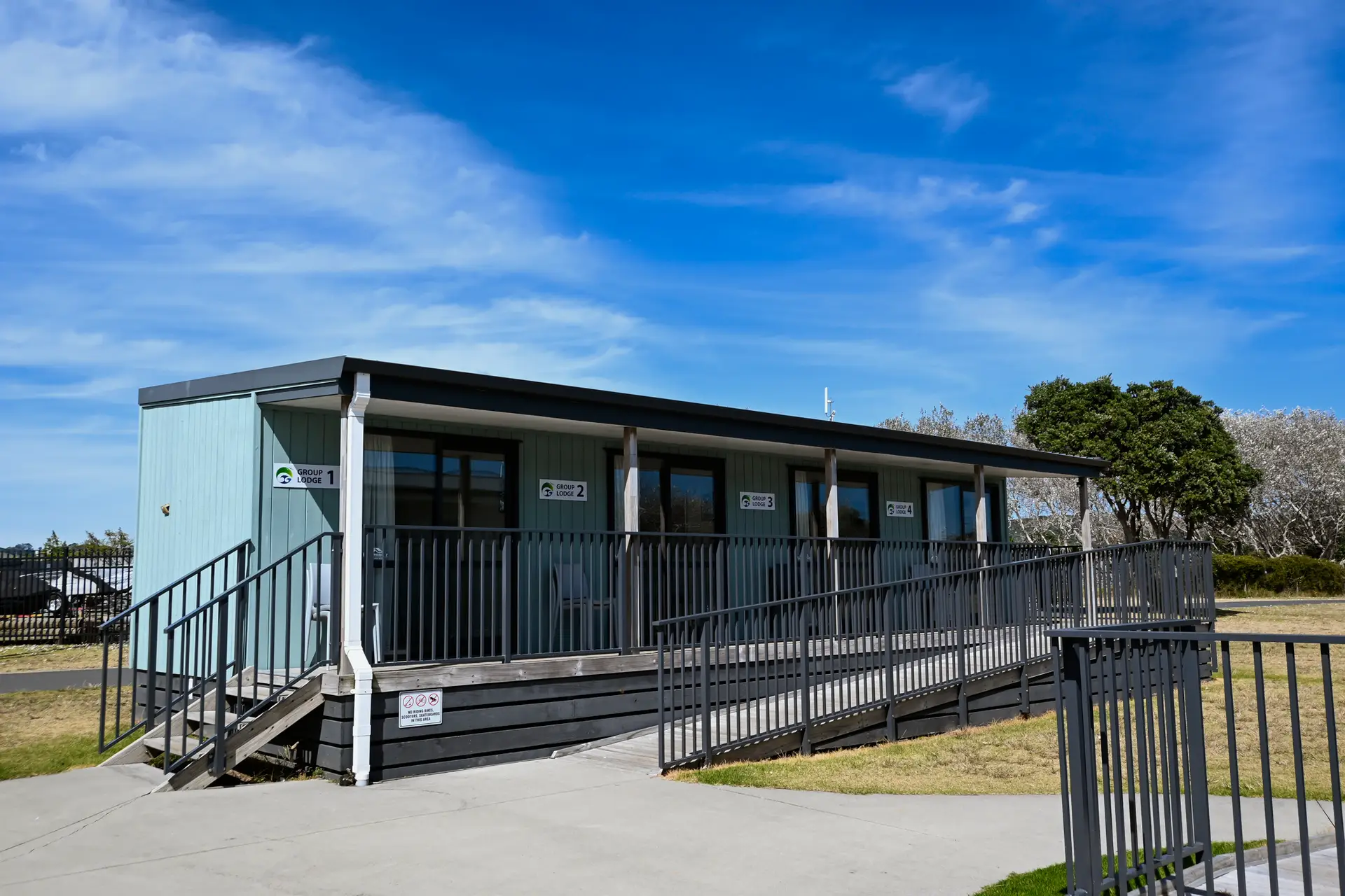 The amenity block is right outside the rooms and the complex also includes the Hui Room and an outdoor BBQ area.